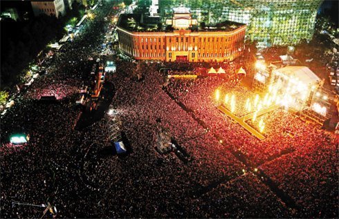 gần nơi biểu diễn như Seoul Plaza Hotel, President Hotel đều cháy phòng.