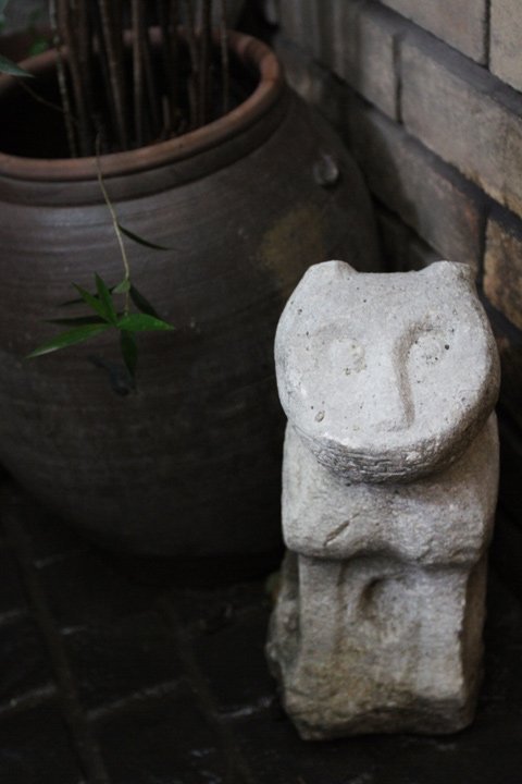 Hai bức tượng đá được đặt ngay trước cửa ra vào.