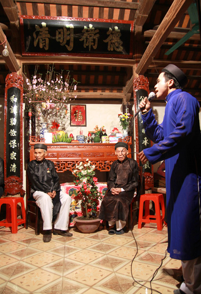 | Một liền anh thể hiện làn quan họ cổ trước mặt tiền nhân. |