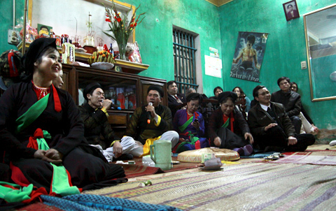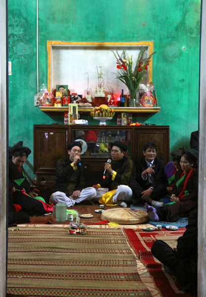 Nhìn từ phía ngoài, canh hát quan họ như một bức tranh văn hóa Bắc Bộ. |