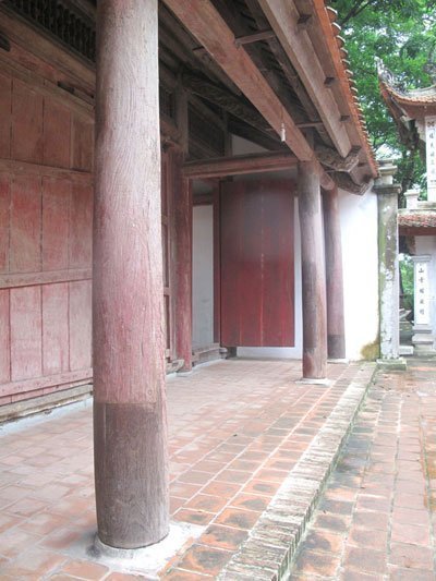 Chân cột tại Đền Và đã được chắp nối gỗ mới.