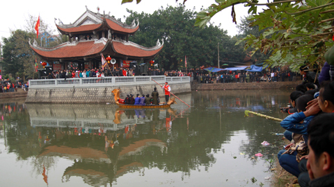 Hồ Bán nguyệt nơi diễn ra hoạt động quan họ trên thuyền vẫn còn rác và hàng quán bày bán xung quanh |