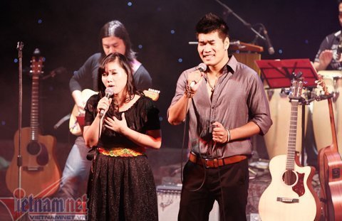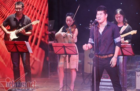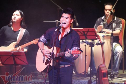 Tạ Quang Thắng vừa đệm đàn vừa hát.