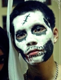 | Hai MC cũng được hóa trang kĩ lưỡng với gương mặt khá đáng sợ của MC nam |