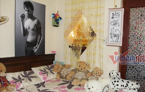 | Phòng ngủ của chàng ca sĩ được bày rất nhiều gấu, chó bông. |