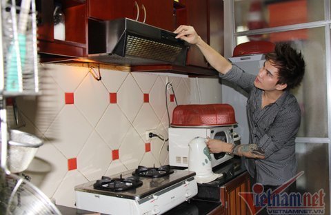| Lâm Chấn Huy và khu bếp nấu nướng. |