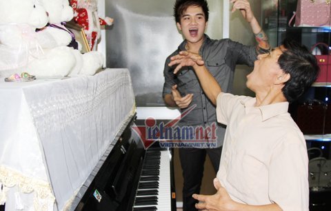 | Lâm Chấn Huy đang luyện thanh cùng ca sĩ Vinh Lưu. |