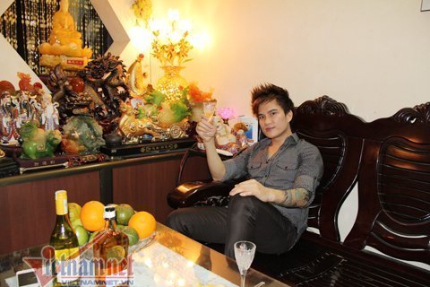 Bước vào căn nhà của nam ca sĩ theo dòng nhạc thị trường này có thể đoán ra rằng anh là người khá duy tâm. Phòng khách gây ấn tượng bởi bức tượng Phật Bà Quan Âm cùng 12 con Giáp bằng ngọc và đá quý được bày khá trang trọng ở phòng khách.