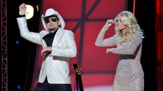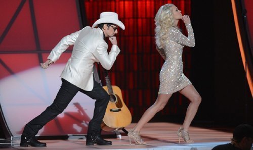 Carrie Underwood và Brad Paisley khiến cho khán giả của lễ trao giải thưởng Đồng quê danh tiếng CMA hứng thú khi bắt chước những vũ điệu ngựa phi quen thuộc.