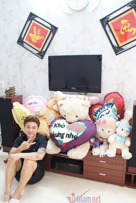 | Phòng ngủ của Vũ Duy Khánh với hàng chục con gấu bông trong suốt 4 năm đi hát được lưu giữ rất cẩn thận. |