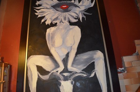 Một bức tranh do Lan Hương vẽ treo ngay ngắn nơi cầu thang |