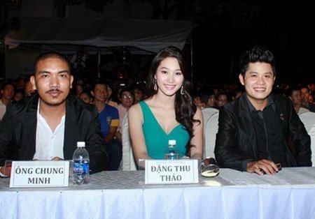 Nhạc sĩ Nguyễn Văn Chung, doanh nhân Chung Minh và Hoa hậu Thu Thảo trong liveshow tại đại học Y Dược