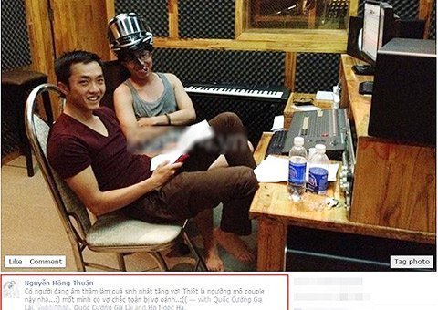 Mới đây, trang cá nhân của nhạc sĩ Nguyễn Hồng Thuận đã đăng tấm ảnh ông chủ của tập đoàn Quốc Cường Gia Lai (Cường Đô La) ngồi trong phòng thu âm của mình. Ghi chú dưới tấm ảnh là: "Có người đang âm thầm làm quà sinh nhật tặng vợ! Thiệt là ngưỡng mộ couple này nha, mốt mình có vợ chắc toàn bị vợ oánh".