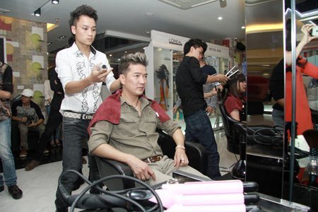| Mr.Đàm được chuyên gia tạo mẫu tóc của Eden tạo kiểu tóc |