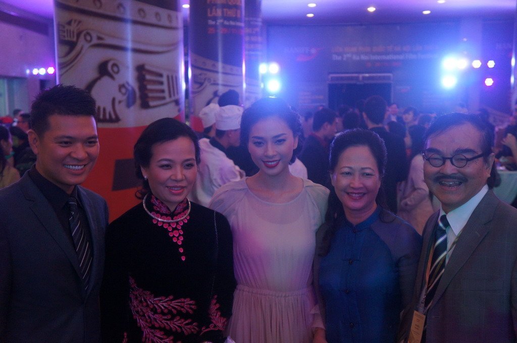 | TS Ngô Phương Lan (thứ 2 từ trái qua), đạo diễn Cường Ngô (bìa trái), diễn viên Ngô Thanh Vân, NSND Như Quỳnh và Thế Anh trước lễ trao giải. Ảnh: Mai Như Ngọc. |