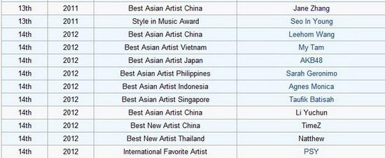 vinh danh tại lễ trao giải MAMA 2012. Tên gọi 'Best Asian Artist' cùng
