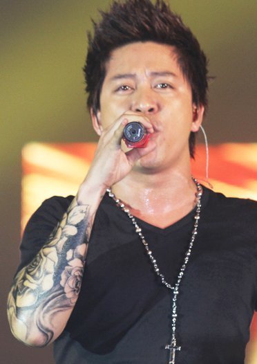 | Tuấn Hưng và hình bông hoa hồng ở cánh tay phải. |