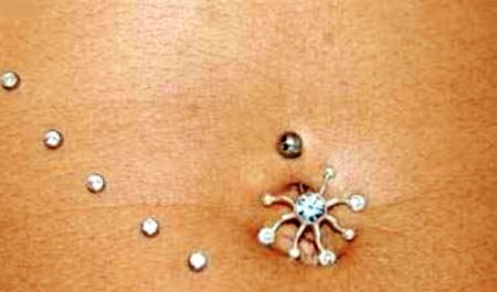| Hình xăm đá trên rốn và bụng của một cô gái. |
