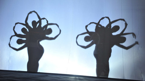 ảnh khác nhau phía sau một tấm màn. Được biết, các nghệ sỹ phải tập luyện rất