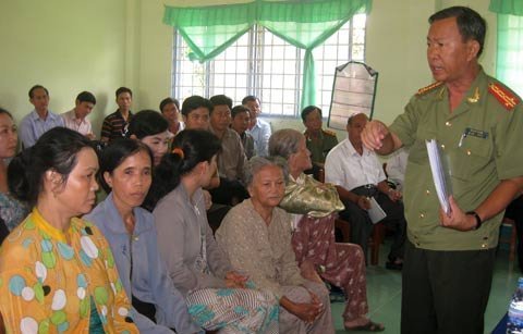 | Đại tá Võ Hoài Phong giải thích cho dân. |