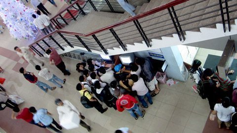Dưới đây là chùm ảnh về tình trạng người dân chen chúc đặt, mua vé trong ga Sài Gòn trong khi bên ngoài “cò” vé rầm rộ “kiếm ăn”: