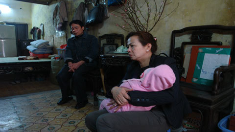 Câu chuyện của bà Quý thỉnh thoảng lại bị ngắt quãng bởi cháu bé nằm trong lòng