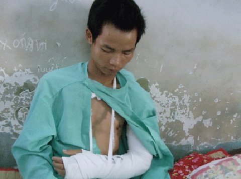 Do quá choáng váng, anh Đào chỉ kịp lết vào kêu cứu và được mọi người đưa đi cấp cứu tại Bệnh viện Chấn thương chỉnh hình TP.HCM ngay sau đó trong tình trạng cánh tay trái đứt lìa 60%, toàn bộ gân cơ duỗi và dây thần kinh bị đứt toàn bộ.