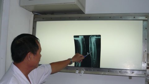 | Bác sĩ Thái chỉ phần xương chi chém lìa của anh Đào trên phim chụp - Ảnh: Thanh Huyền |