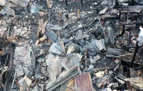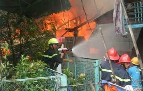Lúc ngọn lửa bốc cháy, nhiều bình gas phát nổ, nhưng may mắn không có người nào bị thương.