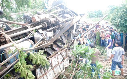 Tuy nhiên, do tốc độ xe chạy lúc đó quá nhanh nên tài xế đã không làm chủ được tình hình, khiến xe lao thẳng vào nhà dân. Cú tông mạnh khiến chiếc xe tải lật úp, đầu xe bép dúm khiến 2 người chết mắc kẹt trên cabin, 1 người khác còn sống và được đưa ra ngoài kịp thời.