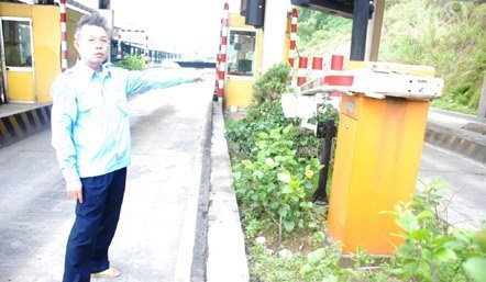 | Trước đó, xe tải này đã tông gãy gác chắn Trạm thu phí |