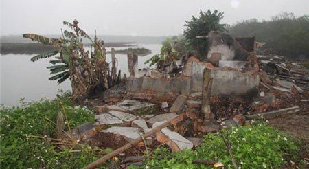 Chiều cùng ngày, huyện Tiên Lãng đã phát lệnh phá nhà trông đầm và đốt lều của ông Vươn, thuê máy xúc đến phá dỡ.
