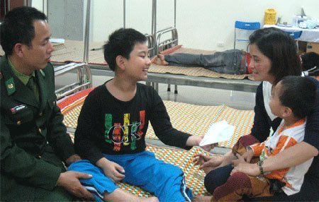 Trò chuyện với chúng tôi,anh Nghĩa giật mình như sực nhớ ra điều gì, nói với vợ: “Mười năm rồi nhỉ?Tháng nào mẹ cũng bồng bế 2 con trên quãng đường ngót trăm cây số từ Thái Bìnhvề Hà Nội. Bố ở xa, năm chỉ về phép được 3, 4 lần, những lần gọi điện nghe conkhóc trong điện thoại vì đau đớn mình đau xót lắm”.