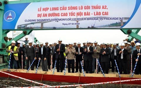 - Chiều 27/12, Bộ trưởng Đinh La Thăng đã dự lễ hợp long cầu Sông Lô, một trong hai cây cầu dài nhất trên tuyến cao tốc Nội Bài - Lào Cai.
