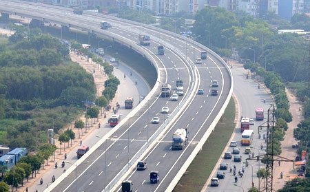 Đây là đường trên cao hiện đại nhất thủ đô, gồm 4 làn cao tốc, 2 làn dừng khẩn cấp cho phép ô tô chạy tốc độ 100km/h.
