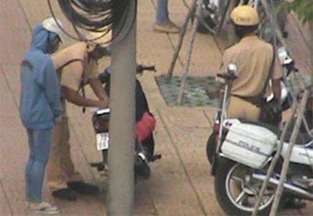 | Cô gái trẻ vi phạm luật giao thông, bị CSGT lập biên bản |