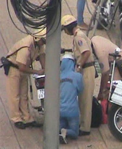 Quá bất ngờ trước hành động trên của cô gái, chiến sĩ CSGT khác đứng bên cạnh đã cùng đồng nghiệp vội kéo tay thuyết phục cô gái đứng dậy. Ngay sau đó chiếc xe vi phạm được CSGT đưa đi. Cô gái tiếp tục chạy đến cố níu kéo, van xin CSGT “tha” trước sự chứng kiến của rất nhiều người đi đường.