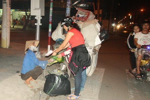 Hình ảnh đó chúng tôi bắt gặp tại góc giao lộ Tô Hiến Thành – Sư Vạn Hạnh (P15, Q.10, TP.HCM) vào nửa đêm của những ngày cuối năm dương lịch, khi cùng đi với một nhóm thanh niên thiện nguyện.