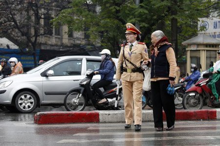 Kết thúc ca làm việc, Trung úy Hoàng Thị Cẩm Vân đã nán lại để đưa một cụ già qua đường. Đây chắc chắn là hình ảnh đẹp trong mắt người dân.