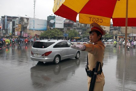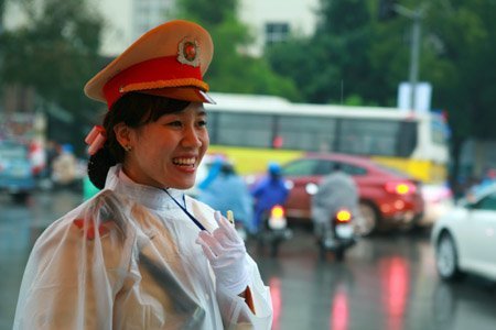 >> Nữ CSGT xinh đẹp xuống phố trong mưa rét