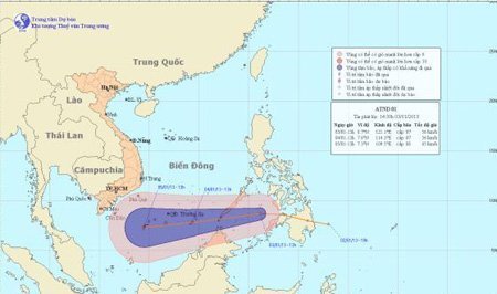 Theo Trung tâm Dự báo Khí tượng thủy văn T.Ư, vào 13h chiều nay (3/1), vị trí tâm ATNĐ ở vào khoảng 8,7 độ Vĩ Bắc; 121,1 độ Kinh Đông, cách đảo Palawan (Philippines) 290km về phía Đông.