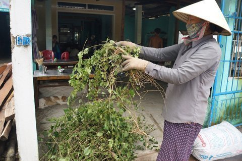 | Một điểm thu mua cây cà gai leo tại phường Phước Hòa. |
