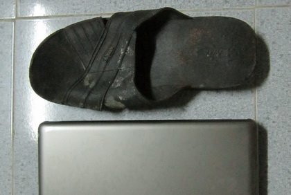 | Chiếc dép dài 38 cm. Ảnh: A.N |