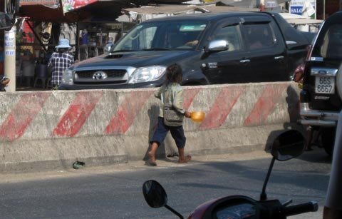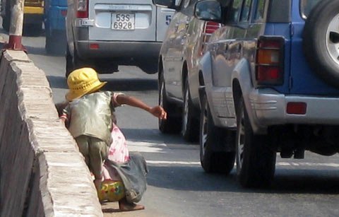 Đối với người dân thị trấn Cai Lậy (Tiền Giang), hình ảnh mỗi ngày có hơn 10 đứa trẻ chặn đầu ô tô để xin tiền đã quá quen thuộc.