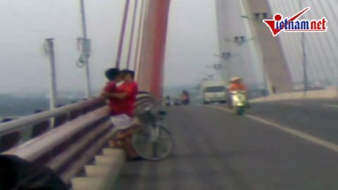 Sáng 5/1, nhiều người đi qua cầu Cần Thơ không khỏi ngạc nhiên trước cảnh đôi nam nữ hồn nhiên 'khóa môi'.
