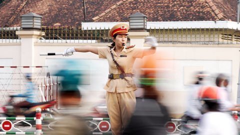 | Một người đàn ông định đi ngược chiều, khi thấy nữ CSGT trước mặt đã dừng lại và ngắm một lúc trước khi đi. |