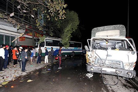 lại tiếp tục đâm vào xe ô tô tải 14M- 7506.