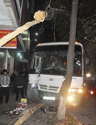 035.60 khiến 6 người bị thương nặng. Chiếc xe khách cũng đâm đổ 1 cây lớn trên