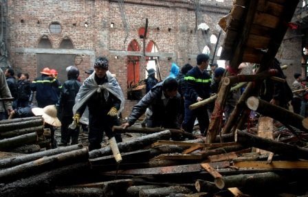| Hiện trường vụ sập mái nhà thờ Ngọc Lâm vào chiều ngày 17/1. |