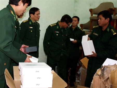 | Biên phòng Đồ Sơn kiểm tra số iPad thu được. |